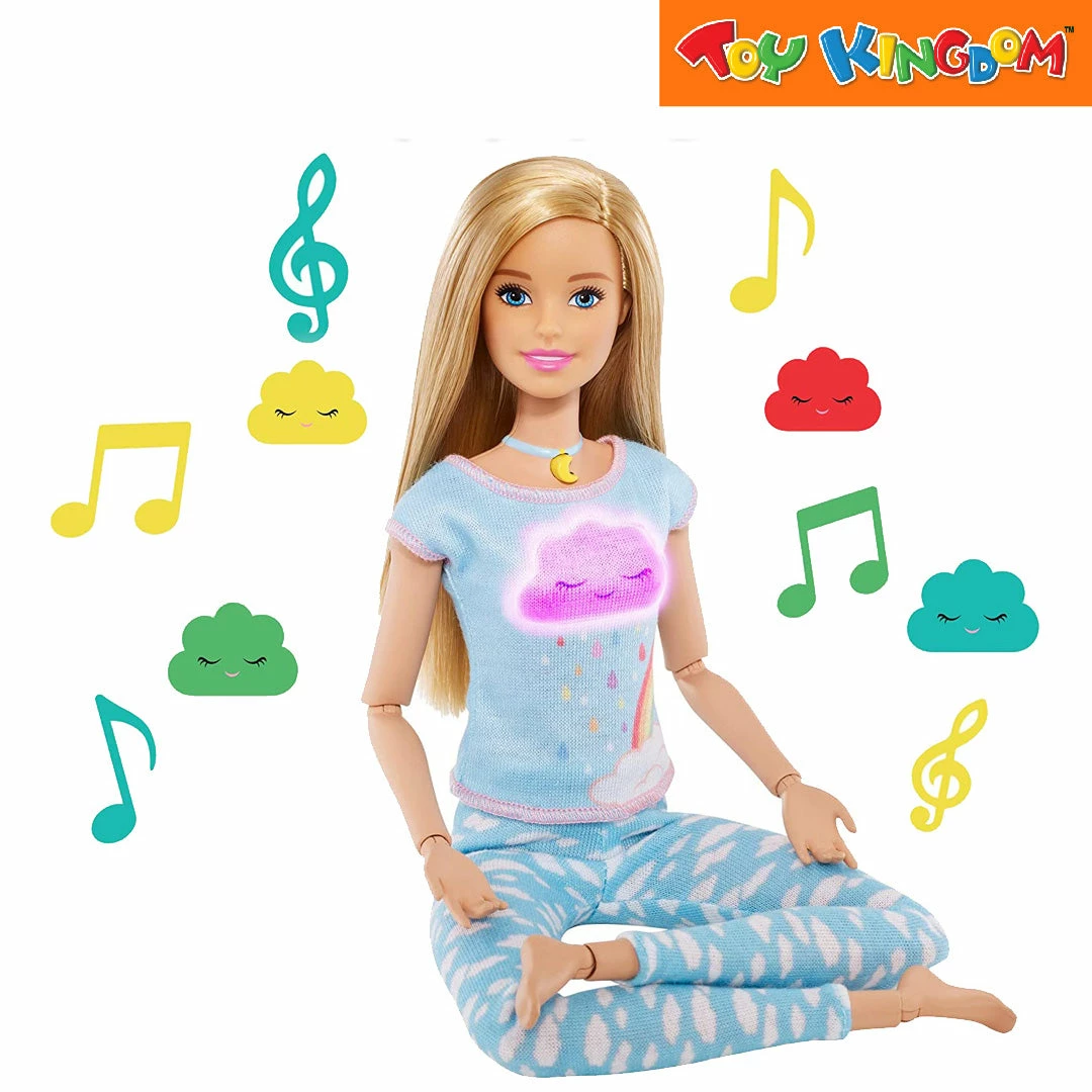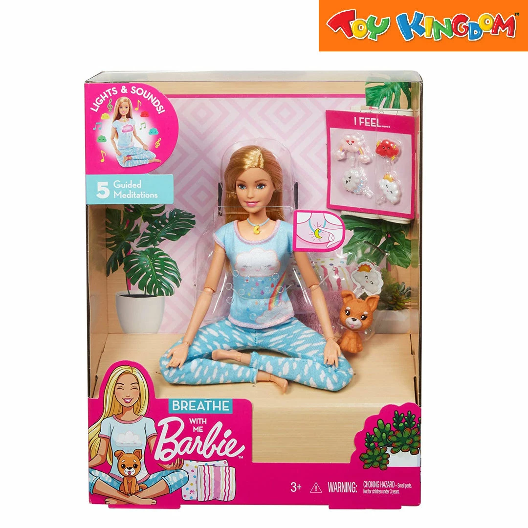 - Press the button in Barbie® doll’s necklace to activate one of five guided meditation exercises that use light and sound effects to inspire their own practice