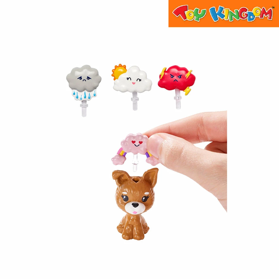 - The puppy helps Barbie® doll focus with visualization: place one of the four cloud emojis — Love Rainbow, Sad Rain, Happy Sunshine or Grumpy Red — into its head to express an emotion; switch them up to express a new feeling.