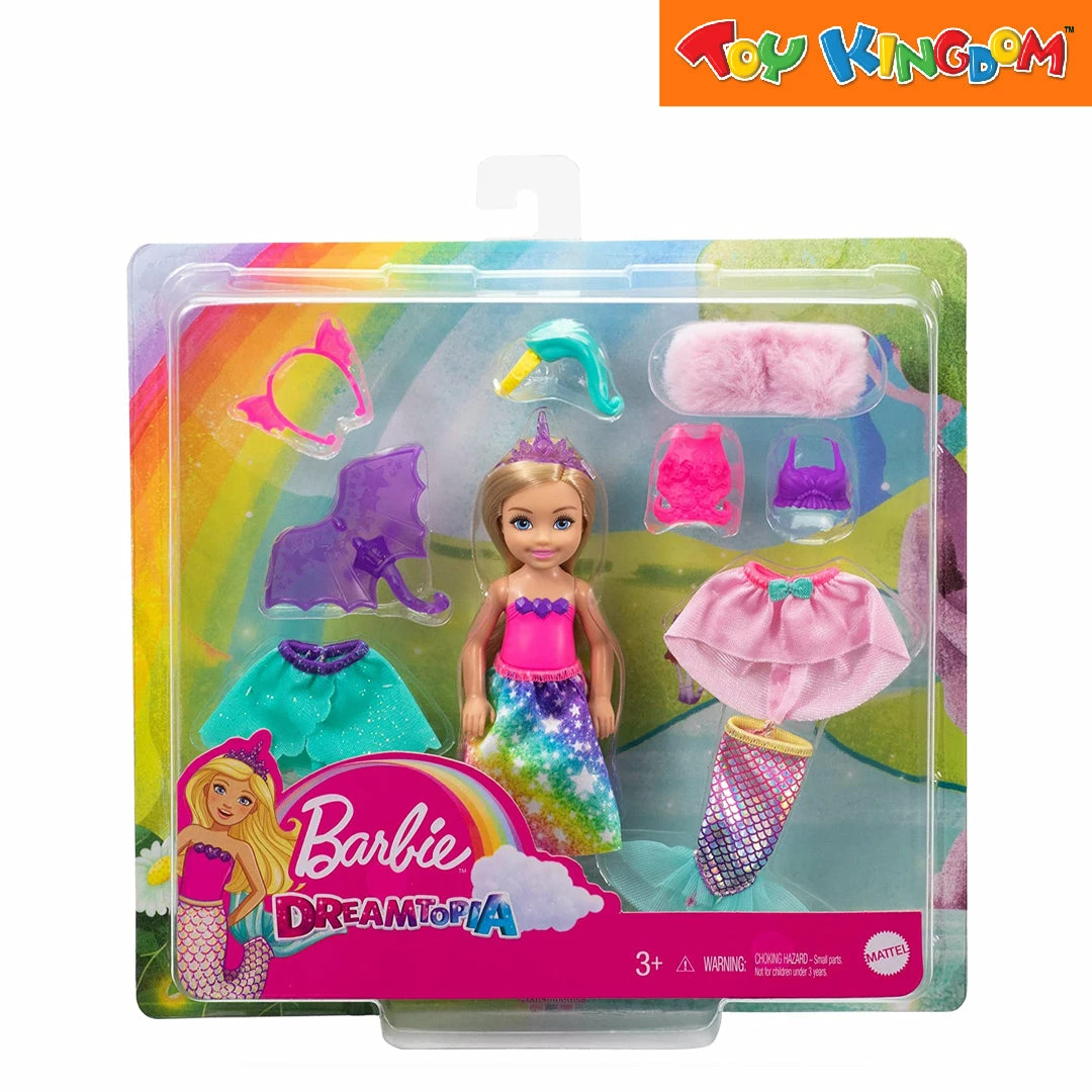 - Imagination can explore endless play possibilities with this Barbie Dreamtopia Chelsea doll set and fairy tale fashion playset.