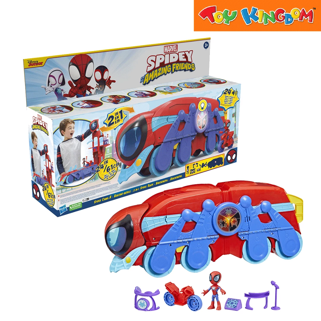 - In vehicle mode, this Spidey and His Amazing Friends toy is 22 inches long and has room in the cockpit for 3 action figures. (Spidey figure included. Others sold separately.)