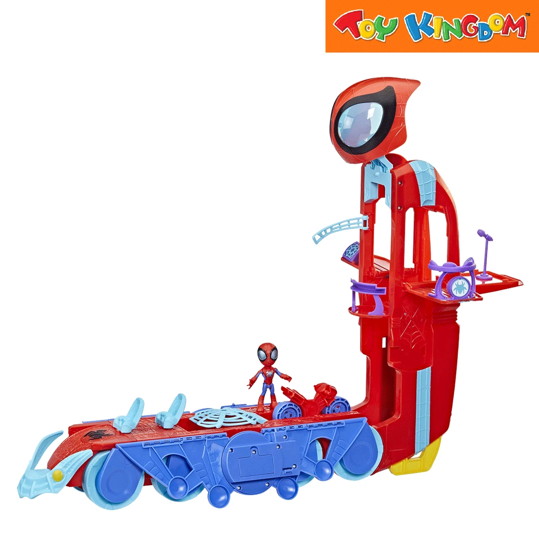 - With a simple conversion, kids can open into a 2-foot-tall HQ tower to reveal a ramp for Spidey’s motorcycle, a web trap, a stage, a command center, and a web arm for swinging