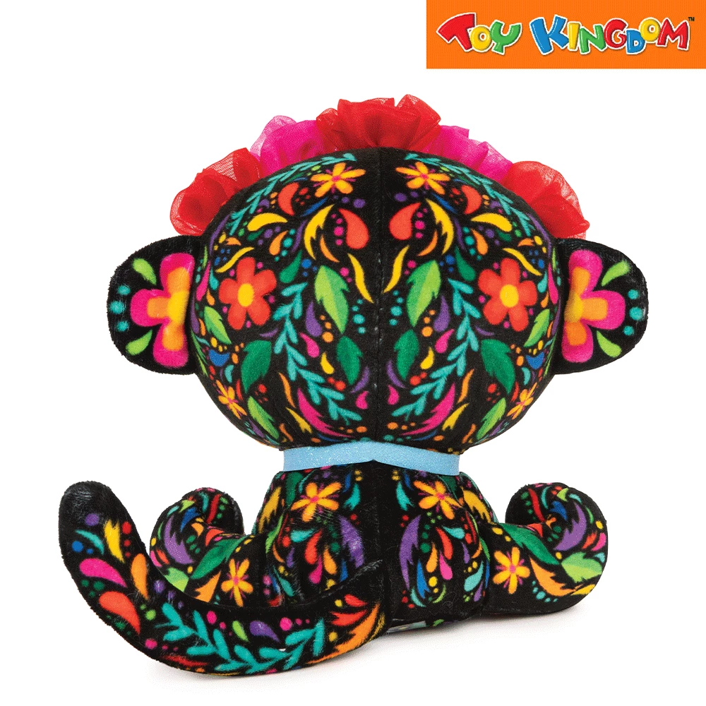 - his stunning monkey is covered in a rich and vibrant black floral print from her ears to her tail.