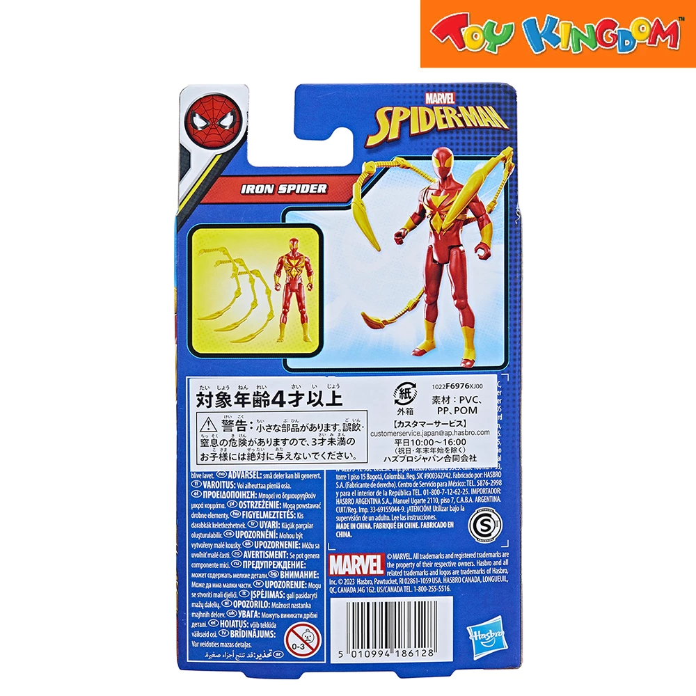 - Includes Accessory: 4-inch Iron Spider toy features an entertainment-inspired design, and includes a coordinating accessory for action-packed playtime Imagine Epic Adventures: Kids will love imagining and re-enacting web-slinging Spider-Man adventures inspired by the Marvel Universe Includes figure and accessory.