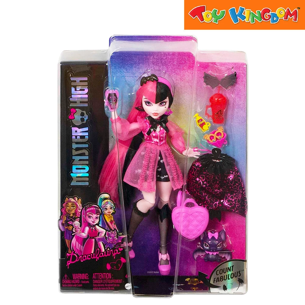 - Take the Draculaura™ doll’s look to the next level with a scary-chic cape and fab-boo-lous accessories, like a backpack, smartphone, snacks, and SPF 500 sunblock.