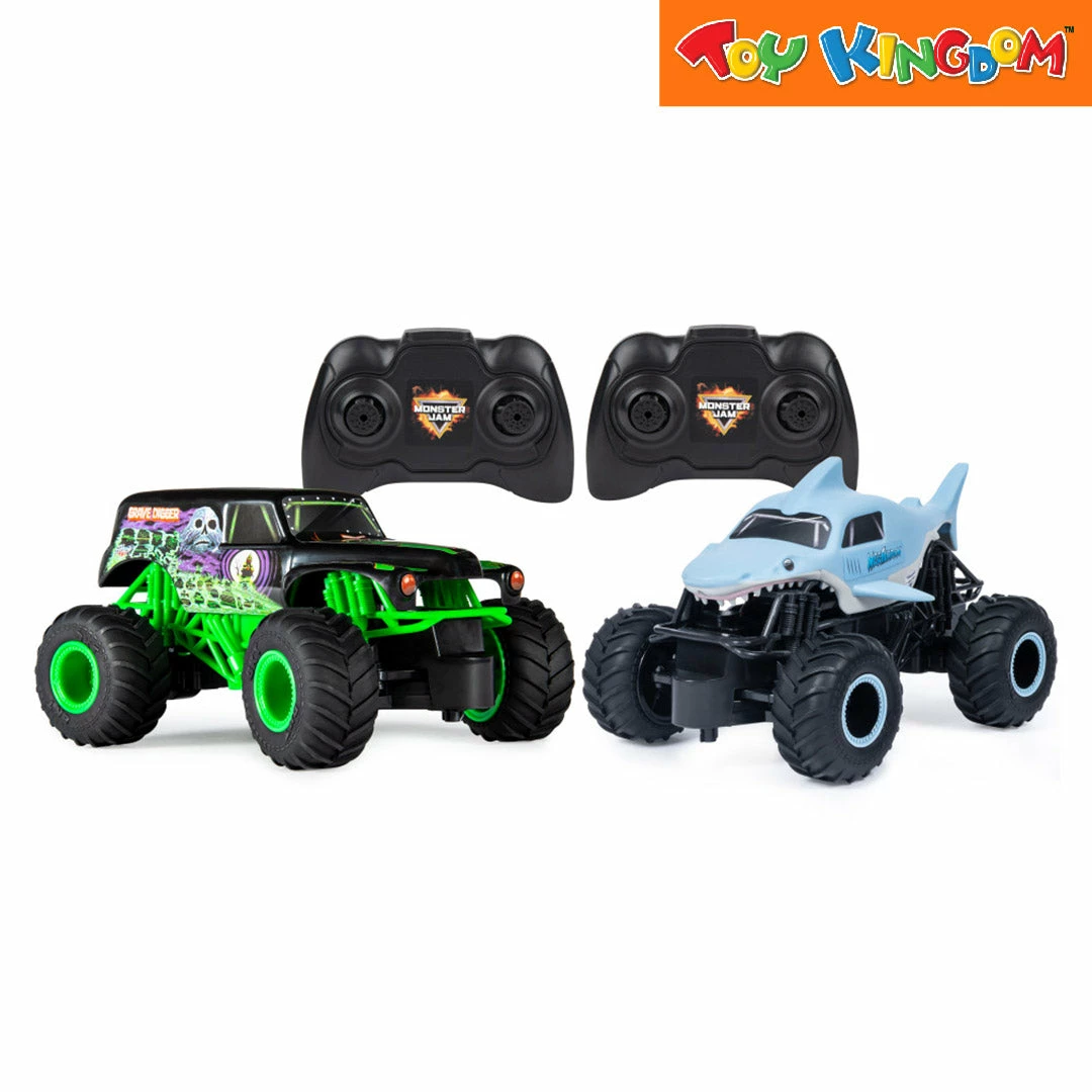- Race Grave Digger and Megalodon against each other and see who will come out on top! These official 1:24 scale Monster Jam RC trucks are built to perform!