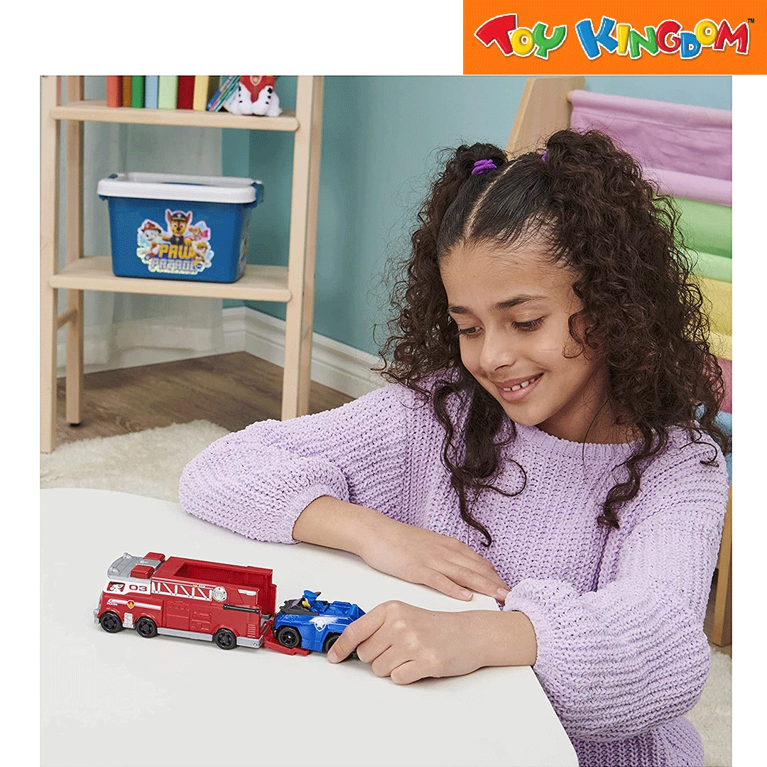 - Just lower the loading ramp at the back, then drive Chase’s rescue vehicle directly up the ramp into the Firetruck. Close the ramp, then head off from one exciting rescue mission to another!