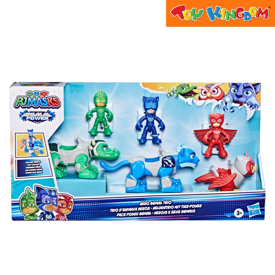 - Features: Inspired by season 5 of the PJ Masks TV show, this figure and vehicle set includes all 3 hero figures in their special animal rider gear and 3 rolling animal rider vehicles