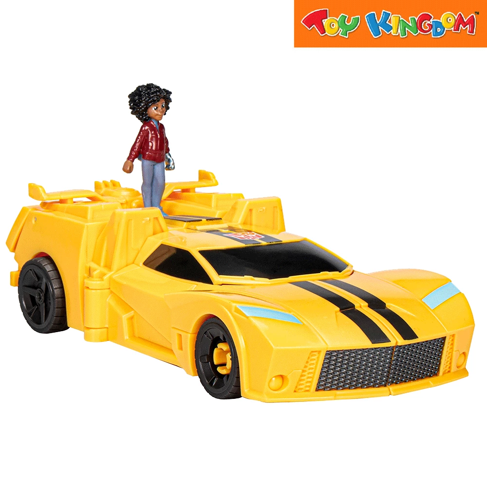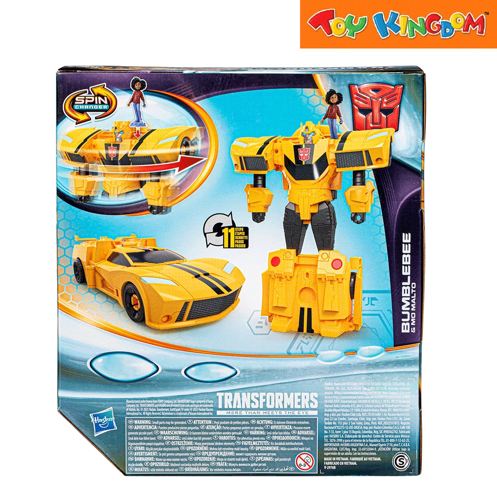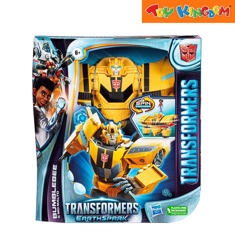 - 2-in-1 toy with spin-to-convert action: begin the conversion to bumblebee robot in 4 manual steps. then, connect mo malto human figure to the robot shoulder to trigger the rest of the conversion in an exciting spinning move! manually convert robot back to sports car mode in 11 steps 8-inch bumblebee figure: bumblebee toy is an impressive 8 inches tall! mo malto action figure is 2 inches tall Human and robot accessory: includes cyber-wings accessory that can attach to both mo malto figure and bumblebee robot toy! Transformers: earthspark characters: bumblebee and mo malto figures inspired by veteran autobot scout and adventurous 9-year-old malto sister from transformers: earthspark, a co-produced animated series from nickelodeon and entertainment one!